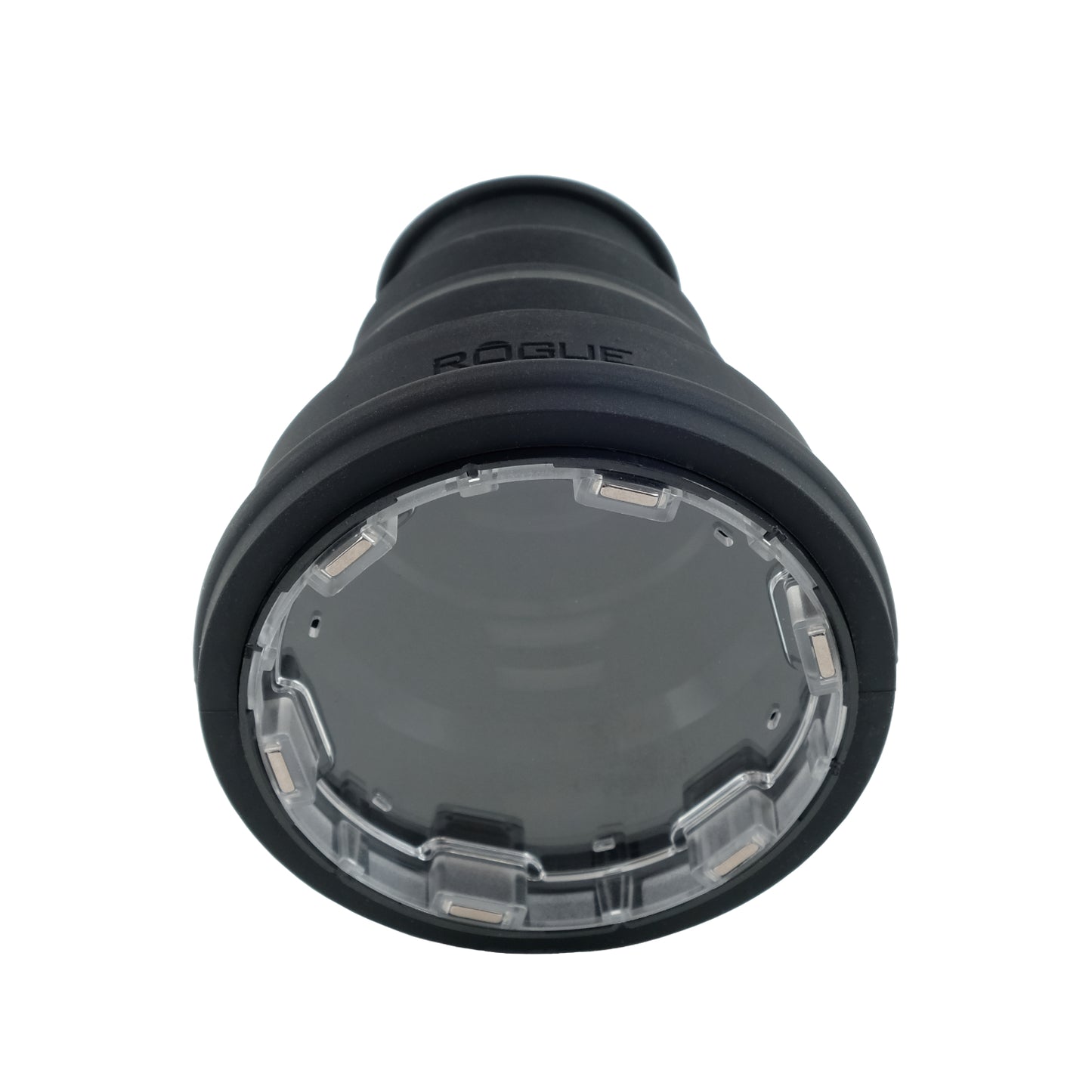 Compatibilidad con flash redondo:  El domo difusor de flash Rogue se conecta directamente a los flashes redondos con una montura magnética a través de la lente de gel Rogue Flash en su base. Es compatible con flashes Godox (V1, R100 y HR200 para AD200), Geekoto (GT 250, GTR) y Westcott FJ80. El uso de Rogue Flash Diffuser Dome con flashes Profoto (A1, A1X, A10) requiere el adaptador Rogue PF (se vende por separado).